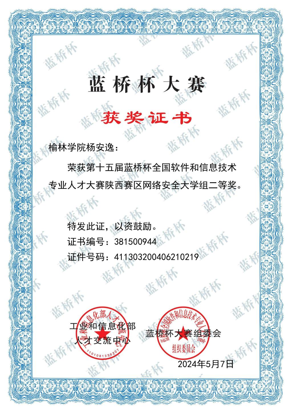 近日,由工业和信息化部人才交流中心主办,我校校团委和365英国上市官网共同承办的第十五届蓝桥杯全国软件和信息技术专业人才大赛网络安全组及项目实战赛成绩公布。由郭红波老师指导的王旭恒、王占春、杨安逸、毋姝淇四位同学获得省赛二等奖3项,三等奖1项,获奖率达80%。另外23级王怡佳同学在参加的项目实战赛—AI办公赛项中获得全国选拔赛一等奖,晋级决赛并获全国总决赛优秀奖,我院在该赛项获奖率达100%。另外我院在该项赛事中电子类和软件类赛道的获奖率均达到50%。
