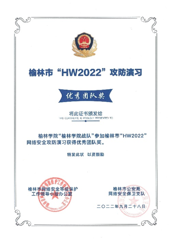2018年10月,联合校团委,郭红波老师组建了网络安全团队,并指导成立了网络安全方向大学生社团——我校信息安全协会。团队成员主要由学生成员和核心教师组成,目前工作场所在我校二号实验楼网络工程实验室。团队目前运作方式为集训、参赛和参加社会活动。目前为止,团队多次荣获国家级学科竞赛奖,多次参与榆林市相关单位组织的网络安全攻防演练活动。学员高水平的竞技能力,获得行业内知名企业的认可,用专业技术服务社会,得到了榆林市相关单位的赞誉和尊重。