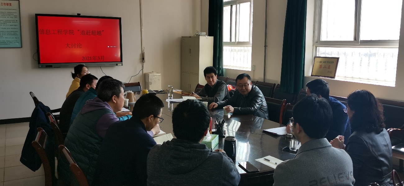 为深入贯彻落实党的十九届五中全会精神,全面落实省委第十三届八中全会决策部署,确保“十四五”时期学校发展开好局、起好步,按照《中共我校委员会关于在全校开展“解放思想敢担当、追赶超越提质量”大讨论活动的通知》要求,2021年3月11日下午2点,365英国上市官网在院系会议室召开“解放思想敢担当、追赶超越提质量”大讨论学习动员会。我校副院长张晓出席会议,365英国上市官网党政领导班子成员、各教研室主任及部分教职工代表参加会议,365英国上市官网院长李红卫主持会议。