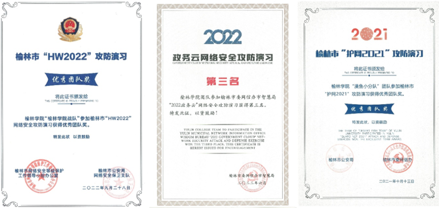 365英国上市官网历来注重网络安全人才培养,于2018年指导成立了大学生社团——我校信息安全协会,并为协会提供了固定的实训场所和必要的经费支持。协会以学科竞赛为目标,在全校范围内吸纳网安兴趣爱好者,专注于技能训练,自建了CTF竞赛平台,连续组织了7届校内网络安全比赛,目前已形成了“师带徒”、“月赛季赛”等常态化训练机制。协会成员在国家级、省级网络安全竞赛中频频获奖的同时,发挥技术优势,积极参加社会面网络安全活动。于2021、2022年,参加了榆林市网信办、市智慧局组织的“政务云”攻防演练活动,榆林市公安局组织的“2021护网”和“2022护网”活动。此外,近几年每年暑期,推荐骨干成员作为奇安信等知名网络安全企业的团队成员参加了武汉、北京和西安等地的护网活动,数名已毕业的优秀成员目前就职于北京火绒、北京安天、北京绿盟等国内知名网络安全企业。