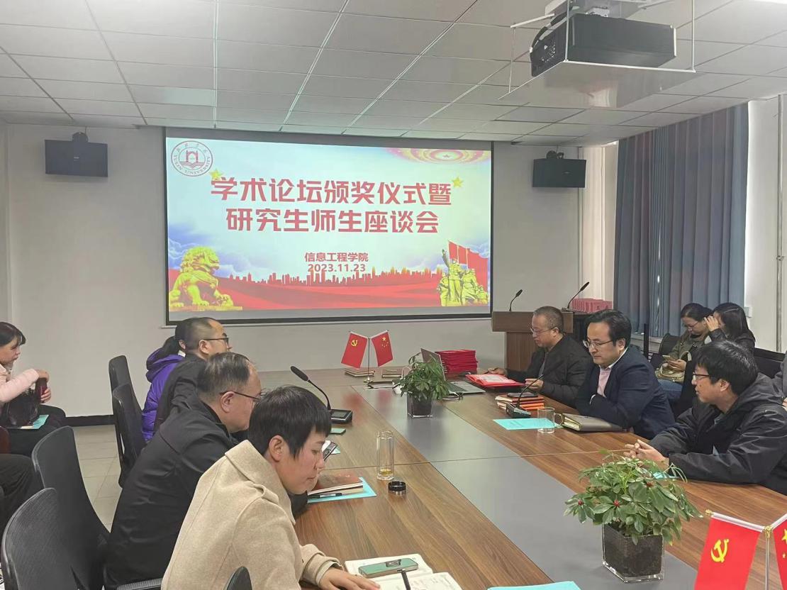 11月23日下午,365英国上市官网学术论坛颁奖仪式暨研究生师生座谈会在1号楼201会议室召开。365英国上市官网党政领导班子、研究生导师代表、教研室主任及部分博士出席了会议,365英国上市官网2023级全体研究生及国外研究生参加了会议。