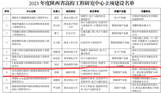 近日,陕西省教育厅发布《关于公布2023年度陕西省高校工程研究中心立项建设名单的通知》,经各高校遴选推荐,省教育厅形式审查、评前公示、专家评审、厅务会审议和结果公示,省教育厅确定50个工程中心为陕西省高校工程研究中心立项建设。其中,我院申报的“水信息协同感知与智能处理陕西省高校工程研究中心”获批。