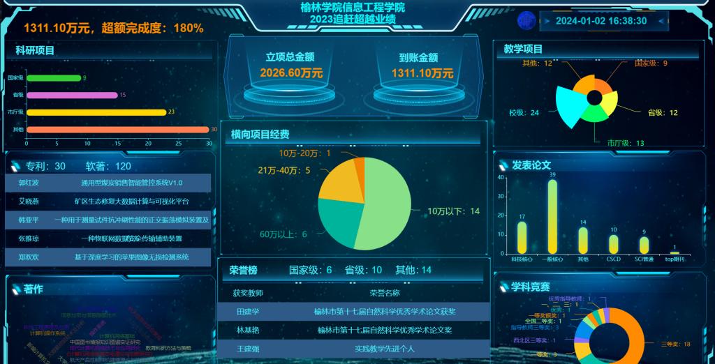 在2023年开发追赶超越业绩大数据分析系统和《个人追赶超业绩大数据库》,实时动态反映教职工在科研水平、教学能力、管理服务能力、综合表现以及对院校的贡献度,并作为职称评定、推优考核、评比表彰、岗位晋升、干部选拔、绩效分配的重要考核标准。