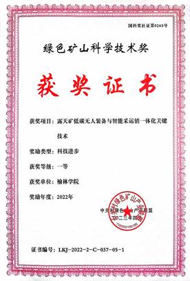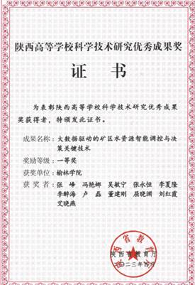 获得2023陕西高等学校科学技术成果一等奖1项, 2023年度陕西省科技进步三等奖1项,绿色矿山科学技术奖一等奖1项,榆林市优秀论文奖18项;授权专利、软件著作权36项,发表高水平论文21篇,秦创原科技成果转化路演1项。