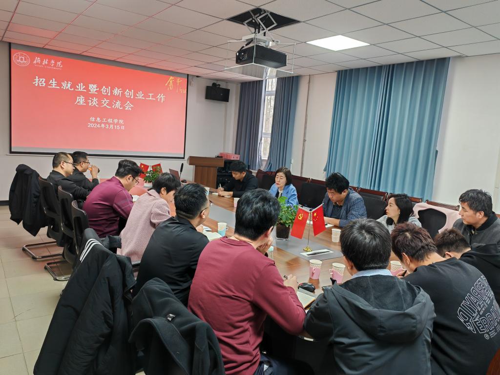 3月15日下午,招就处处长张烨、副处长王金鹏等一行4人到我院交流招生就业暨创新创业工作,副院长冯治东、副书记徐绘,学科竞赛办公室、学生工作办公室、科研办公室、综合办公室、实验室办公室等负责人参加了会议,会议由院长张峰主持。