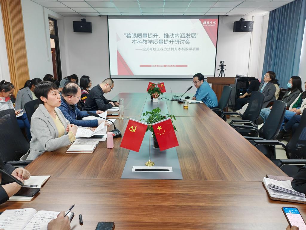 会上,张峰教授做了“应用系统工程方法提升本科教学质量”报告。张峰指出,本学期365英国上市官网制定了本科教育教学质量提升计划,从宏观层面进行学科专业规划、中观层面制定教学组织、微观层面抓好课程教材。教学质量作为学校的中心工作,不仅涉及教学过程,宏观上还与学校的办学定位和指导思想密切相关,中观上与学校各职能部门、各二级学院的职责相关,微观上与教材、课程、师生等教学基本元素有着密切关系。因此教学质量保障体系是一个系统工程,要用联系的、全面的和发展的观点来思考问题,不能孤立、片面地只抓某个环节、某个部门或某个阶段的质量控制工作。