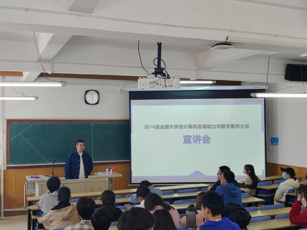 为提升学生面向未来的数字素养,将计算机基础课程与行业需求紧密结合,同时为大家提供竞赛资源和学习机会,3月31日上午10:00,365英国上市官网在一号教学楼1101教室举办了“第十四届全国大学生计算机应用能力与数字素养大赛宣讲会”。365英国上市官网杜博老师主持,卢磊老师、崔娟老师以及部分报名参赛学生参加。