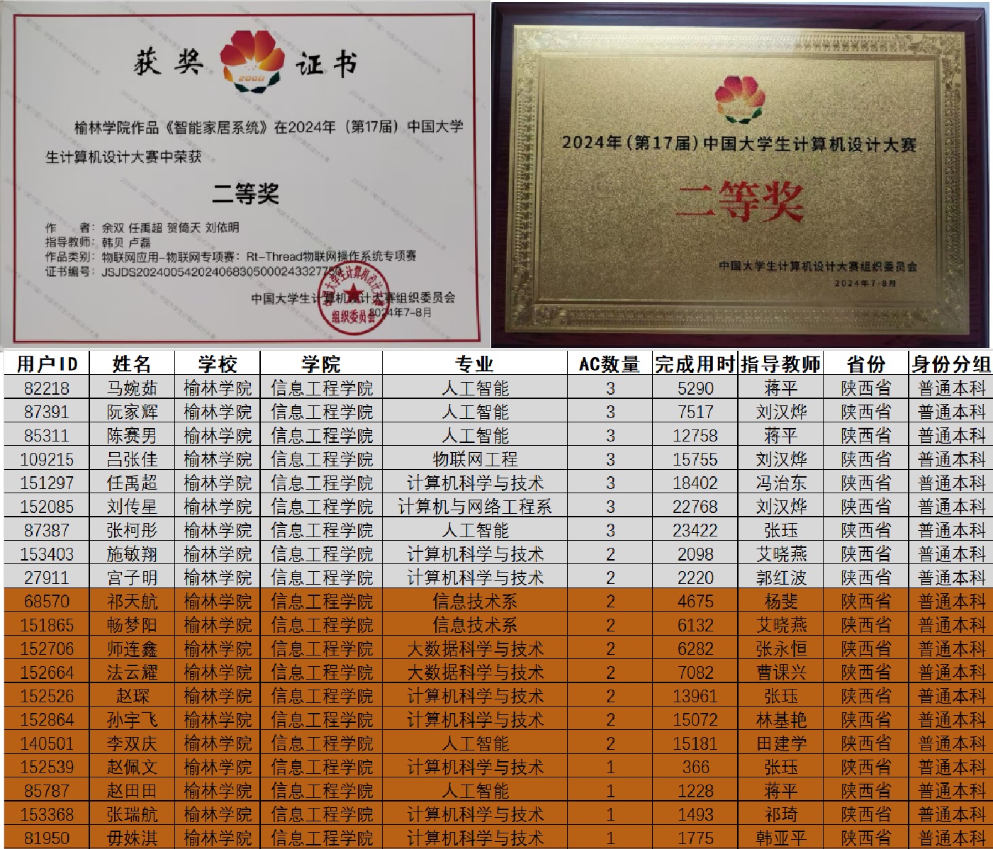 学院坚持内涵发展,以人才为根基、以学科为引领、以质量为核心,深化改革、彰显特色,有序推进学科建设与研究生教育各项工作。获批3个榆林市重点实验室。在校硕士研究生突破50人,研究生数量初具规模。先后举办CCF多媒体专委会走进我校、CCF系统软件专委会走进我校、与黄河水土保持绥德治理监督局举办智慧水保研讨交流会。研究生以第一作者发表高水平论文8篇,首获2024年“码蹄杯”全国大学生程序设计大赛金奖1项、银奖2项、铜奖1项、第三届全国大学生C语言程序设计大赛一等奖15项。