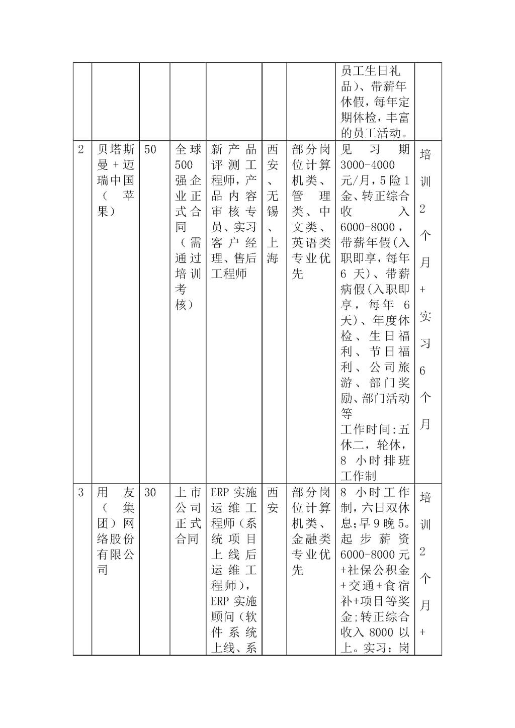 德国贝塔斯曼-迈睿中国(苹果)(Bertelsmann Majorel China)创立于2001年,前身为欧唯特中国,在客户关系管理领域拥有数十年全球本土化商业服务经验。在全国7个城市,拥有9个运营中心,超过4,500名员工。凭借丰富的行业经验,领先的IT技术,卓越的运营服务,以及定制化的解决方案,迈睿中国赢得了高科技、汽车、互联网、物流、美妆、奢侈品及时尚、快速消费品、零售等众多行业的青睐,是超过100家知名企业长期可靠的商业合作伙伴。公司通过客户体验服务(CX)、数字化营销服务(Digital Marketing)和业务流程外包服务(BPO),为现有客户和新客户提供全新的综合解决方案,与我们的商业客户获得持续共赢。(本次实习生将在贝塔斯曼无锡培训基地进行培训实习,签订正式合同后将回西安贝塔斯曼职场工作)