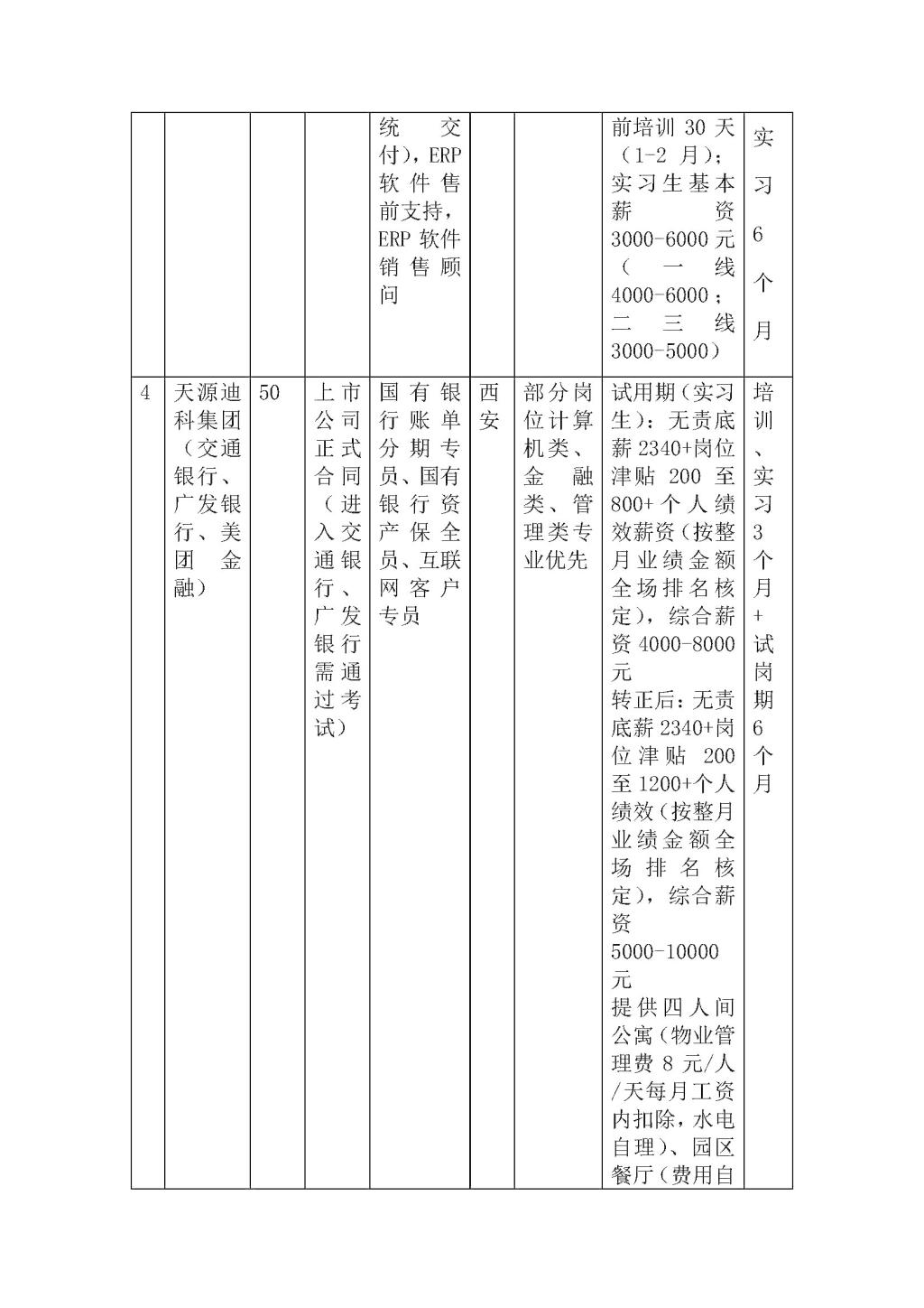 4、迪科数金是天源迪科集团是服务金融机构的企业,公司致力于利用工智能技术、大数据处理和建模能力,为银行信贷业务提供包括营销获客、贷前信审、贷中管控以及贷后管理在内的客户全生命周期产品和服务。通过“专业化、流程化、规模化”的全流程服务,立足于金融领域,帮助企业实现内部资源整合,成为金融企业战略合作伙伴。迪科数金目前拥有八个金融服务交付基地:合肥、西安、成都、亳州、芜湖、武汉、阜阳、重庆。目前有5000多名银行后台运营服务团队。西安迪科数金智能科技有限公司是安徽迪科数金科技有限公司全资子公司,是公司布局西北区域金融科技服务的交付基地。西安分公司成立于2018年,目前人员规模突破800人。(本次实习将提供交通银行、广发银行职位)