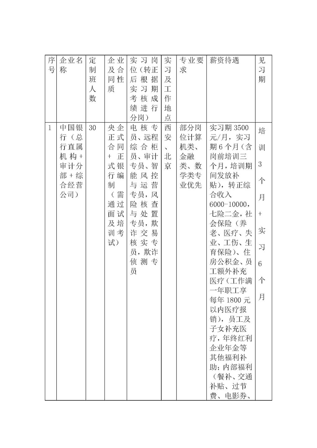 附件1:定制班信息(详细见附件1)