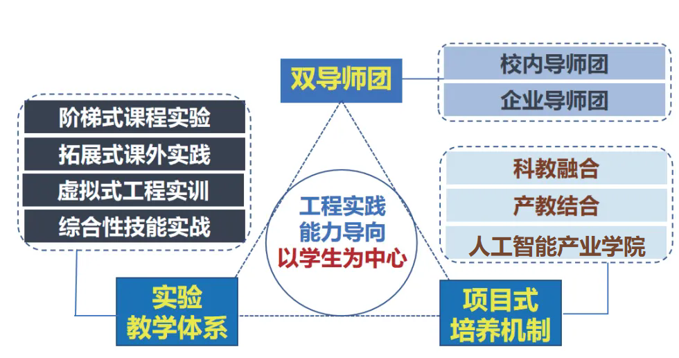电子信息硕士研究生培养以服务地方发展战略为出发点,以人才培养对接行业发展需求为目标,通过产教深度融合、强化实践实训、完善师资队伍、重视国际化发展、提供有力保障等途径,面向电子信息领域高层次、复合型、应用型、创新型人才培养,建立基于“一个导向、双导师团、三层项目式培养机制、四维实践教学体系”的工程实践创新能力培养新模式。